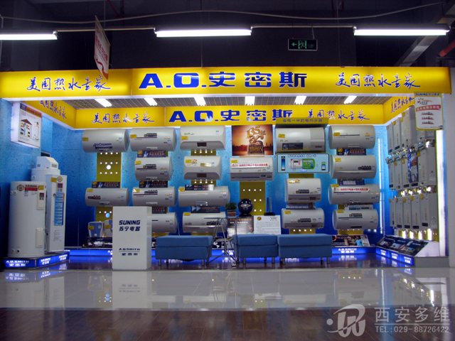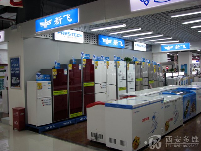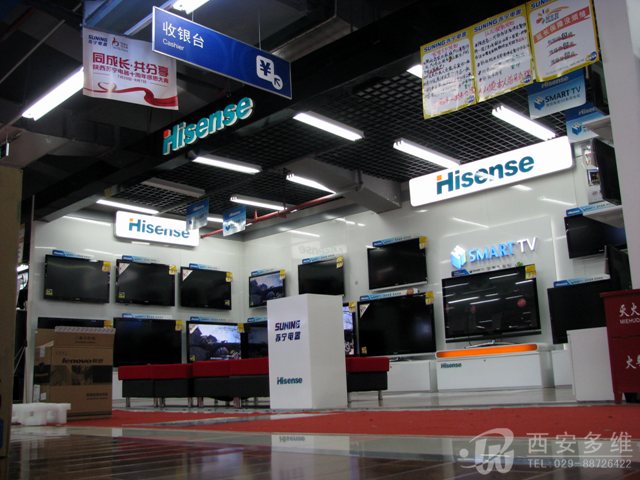 2011年6月,由陕西多维广告有限公司制作的长安苏宁二店各品牌家电展台制作完工,以下是各品牌展台上样后照片: