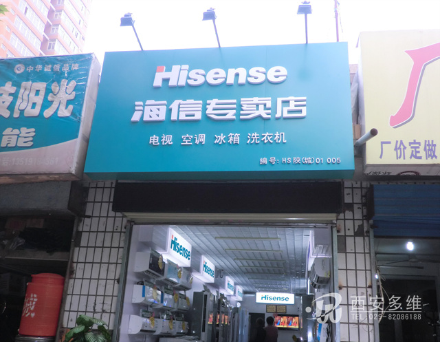 陕西多维广告有限公司为海信集团展台制作指定供货商,2012年3月长安韦曲海信专卖店展厅制作完成:海信电视展柜,海信冰箱展柜,空调展柜。