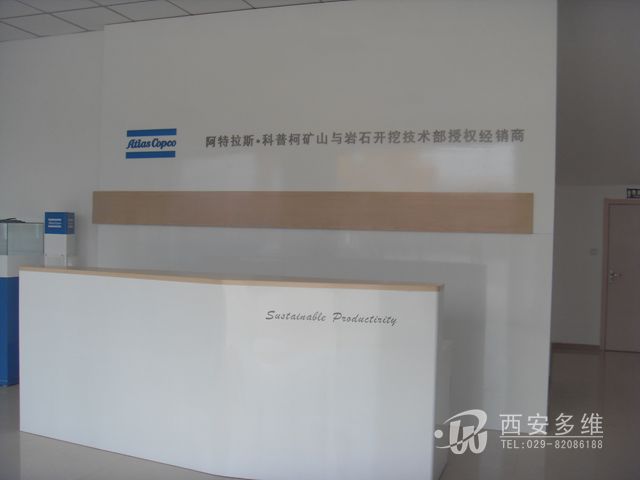 西安展台展柜制作--中亿源机械贸易有限公司西安分公司门头,形象墙,接待台,展柜制作。