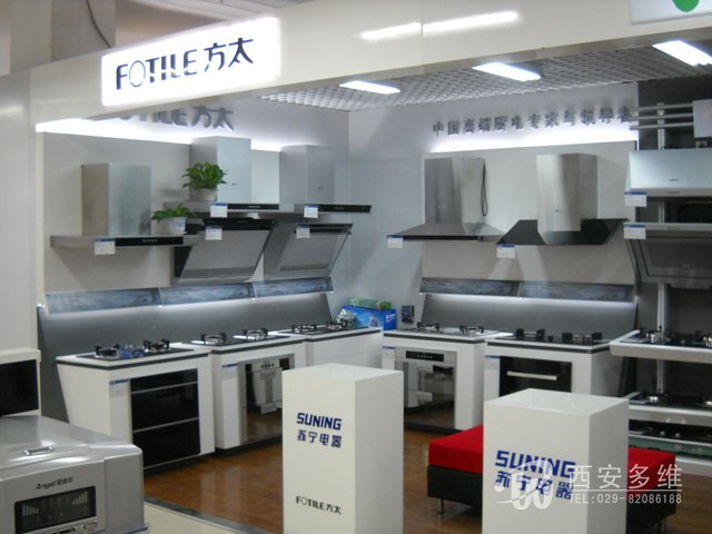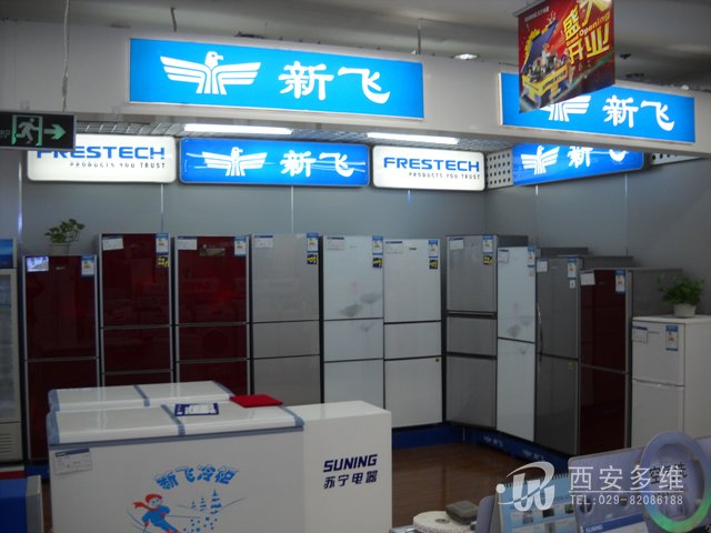 家电商场苏宁电器铜川店展台制作:GL冰箱展厅、LG洗衣机展台、新飞冰箱展柜、海信电视展台、LG电视展厅、史密斯热水器展厅、方太厨电展台、商场包柱开票台制作等。