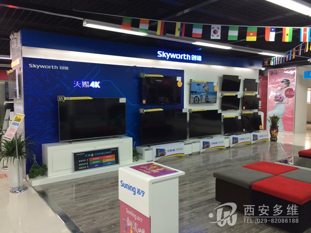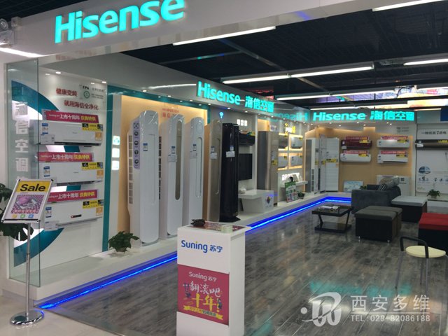 苏宁云商西安高山流水店(丈八东路立交桥店)通过紧张装修,已于近期开业,我公司参与设计并制作的展厅有:海信电视展台,创维电视展台,方太厨电展厅,新飞冰箱展台,L电视展厅,LG冰洗展厅,A.O.史密斯热水器展厅,现将各展厅上样照片展示如下: