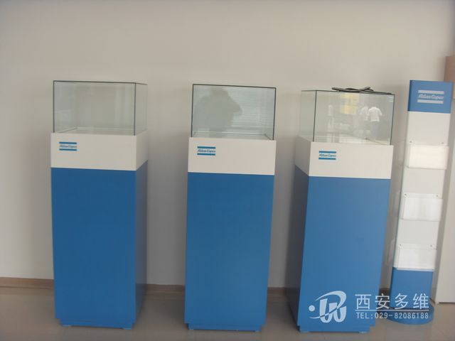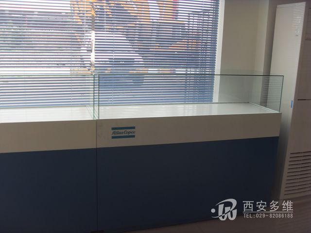 西安展台展柜制作--中亿源机械贸易有限公司西安分公司门头,形象墙,接待台,展柜制作。