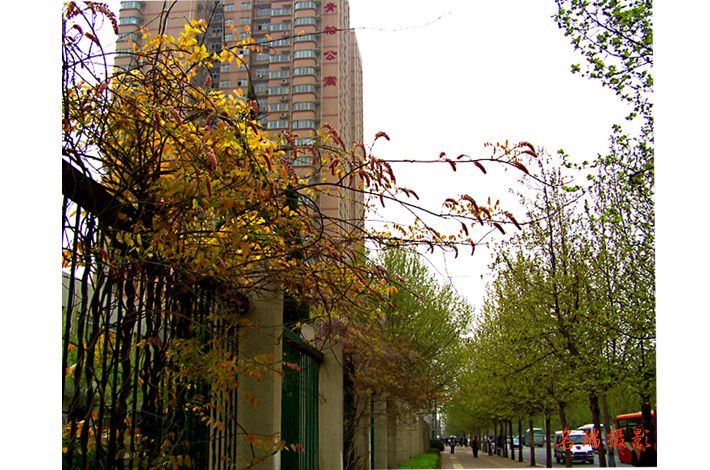 围墙花开时节的青松公寓